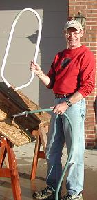 For safety, we don't have Scouts involved in this step. Adults bend the frames ahead of time. Due to the setup time involved in this step, we typically make enough for several years' worth of new Scouts.